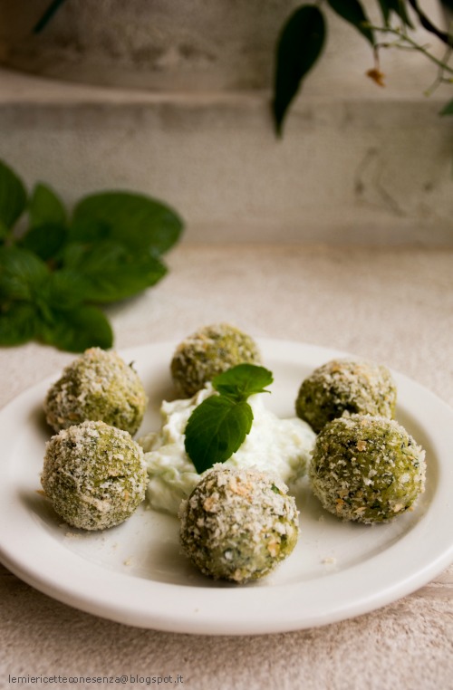 Una volta pronte le ho servite con la salsa tzatziki precedentemente preparata alla quale ho aggiunto un paio di foglioline di menta fresca.