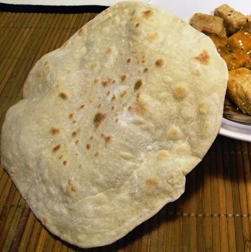 Alle 6 di sera mi sono accorta di aver finito la polenta e di non avere più pane in casa ed essendo troppo tardi per prepararlo, ho pensato di dare una nota esotica alla cena e realizzare del pane indiano, il chapati, che non richiede lievitazione.